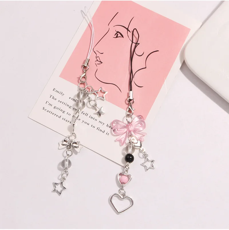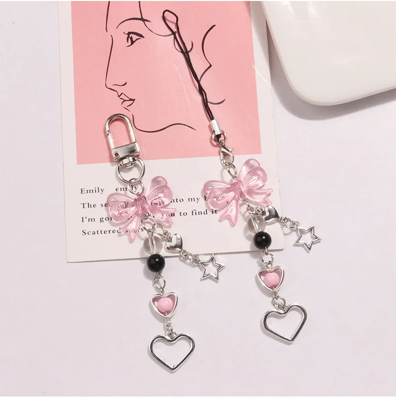 حساسة القوس ستار القلب المفاتيح آيفون الإبداعية الحبل مفتاح سلسلة حقيبة قلادة الهاتف سلسلة Y2K Kpop مجوهراتهدية الفتيات